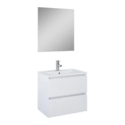 De Atlantic Heon is zeer stijlvolle badmeubel met voldoende opbergruimte in de 2 Softclose lades met profielgrepen. Het Softclose systeem zorgt ervoor dat de lades zachtjes sluiten wanneer je deze te hard dicht doet. Zo voorkomt het systeem dat het hout beschadigd raakt. De Atlantic Badmeubelset Heon Wit 60 cm met Spiegel is ook verkrijgbaar in de breedtemaat 80 cm en met een houttint in plaats van wit. Voldoende keuze dus! De wastafel heeft 1 kraangat en is gemaakt van hoogwaardig keramiek en heeft de klassieke witte kleur. Daardoor past deze in werkelijk iedere stijl badkamer of toiletruimte. Deze set is compleet met de spiegel, maar helaas zijn het sifon, afvoerplug en kraan niet inbegrepen. Die zul je nog even zelf uit moeten kiezen, maar ook daar heeft GAMMA keuze genoeg in.