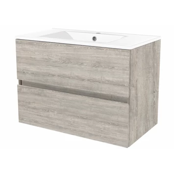 Atlantic Badmeubelset Stella Met Spiegel En Witte wastafel 60cm Canela Eiken